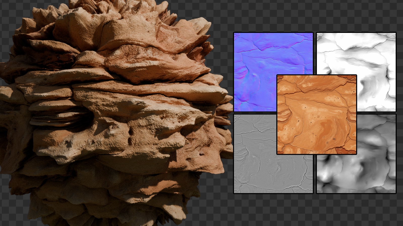 TORCH is a sandbox for material exploration, generating mixable maps for controlled visual experimentation. The basecolor is intentionally labeled “original”, indicating an exploratory source rather than a final production texture.